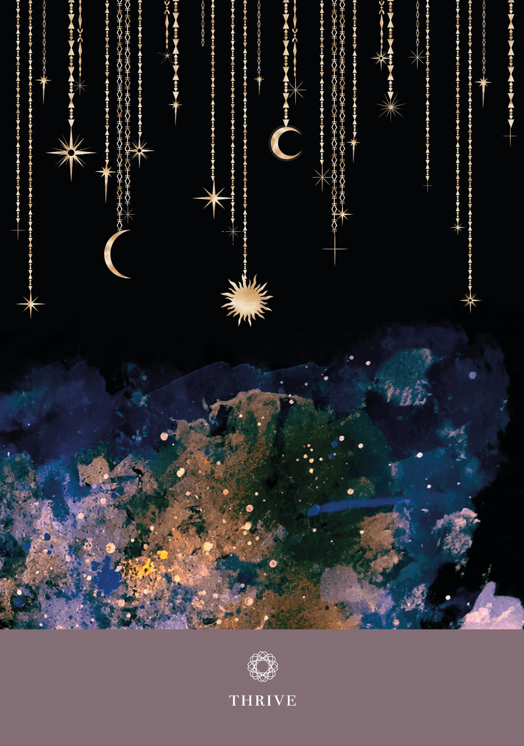 Sascha created all the backgrounds of the cards in the nature of Ibiza. With help from shells and leaves, guided by Mother Earth she found the sweet spot of colors, blends, and symbols that suited the deck.